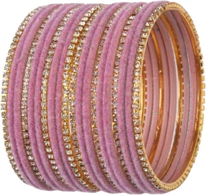 Efulgenz Bollywood Bracelets for Women Indian Bangle Set Rhinestone CZ Crystal Velvet Bracelet Jewelry